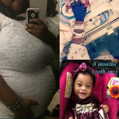 After 6 years of infertility & loss my husband & I finally conceived our baby girl Reign Victoria. Our pregnancy was completely uneventful until week 26. While on vacation I began to experience shortness of breath and severe swelling. By the time I got on the plane to come home I couldn’t fit my shoes, could barely breathe and couldnt see very well. I was rushed to the hospital on the ground and after blood, urine & radiology tests I was diagnosed with sudden onset severe preeclampsia, pulmonary edema and HELLP syndrome. I was rushed into a crash cesarean and on March 25 @ 6:53 pm Reign Victoria was born at 26 wks and 6 days weighing just 1 lb 15 oz. Despite the doctors expectations, she was born breathing on her own! Over the next 11 weeks she would experience 2 lung collapses, 2 infections, 8 blood transfusions and severe respiratory complications. After 80 days in the NICU and 2 weeks before her due date, our little miracle came HOME weighing a healthy 6lbs 10oz! At 8 months old she has caught up in her weight and development and weighs a whopping 20 lbs! I am still fighting hypertension, abnormal liver enzymes as well as pre-existing issues related to Lupus.But we couldn’t more grateful to have our Miracle baby Reign in perfect health & defying the odds! - Ebony Ford