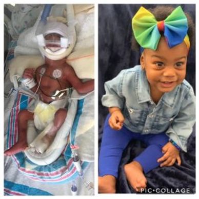 My preemie warrior Addelyn just turned one she was born at 33 weeks due to severe preeclampsia and IUGR she was 2 lbs. 10 oz. She is forever my miracle girl!